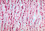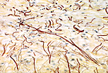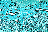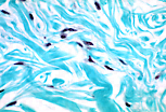 另一种三色染色法可特异性显示胶原纤维:即冯吉森(Von Gieson)染色法,其中I型胶原被染为红色,而细胞的胞质被染为黄色,细胞核被染为黑色。 |