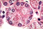 | 在该浆液性腺泡中,细胞顶端可见细胞间小管。这些细胞间小管增大了发生胞吐作用的顶端表面积。 | |