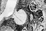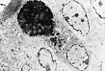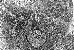 透射电镜下,顶端闭合型黏液性腺细胞的特征是存在电子密度低的黏原颗粒。这些颗粒彼此分离、不融合,与杯状细胞的黏原颗粒不同。 |