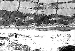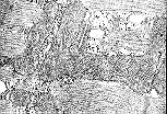 该视野显示横切骨骼肌(横纹肌)细胞的周边部分,其边界为肌膜; 线粒体紧贴细胞膜分布; 肌节在不同水平被横切,周围环绕着滑面内质网(肌浆网)的切面。 |