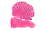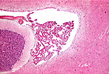 此HES染色切片还显示了脑干的一部分(小脑位于其后方),以及附着于小脑附近脑室壁的脉络丛结构。 |
