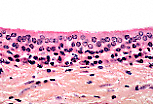扁平上皮由扁平细胞(宽大于高)构成,其游离面(顶端)可因细胞核存在而略微隆起。 |