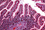 | 肠皱襞上的指状突起构成了肠绒毛。 | |