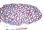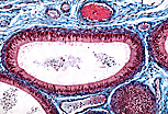 该管道极度迂曲,因此在附睾切片中可观察到这一单一管道的大量不同切面。