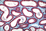 附睾管的管腔内含有精子,管腔由静纤毛假复层被覆上皮衬贴。管道周围环绕着平滑肌细胞。