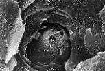 这是扫描电子显微镜下观察到的大鼠舌味孔,周围环绕复层扁平上皮细胞。 |