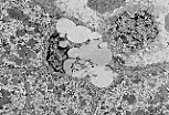 该视野清晰显示肝血窦内皮的窗孔,以及狄氏间隙;肝细胞微绒毛浸泡于狄氏间隙的液体中。 | |
