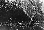 扫描电镜(MEB)下观察肝板断面,可见肝细胞的血窦面布满微绒毛,