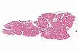 浆液性腺泡细胞基底部细胞质呈嗜碱性(合成装置发达),顶端聚集嗜酸性的分泌颗粒。 泡心细胞仅能清晰看到细胞核,是闰管的起始部分。 |