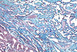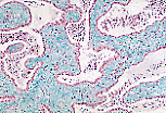 睾丸网的腔隙衬有单层上皮,该上皮由扁平、立方或柱状细胞组成,由此形成特征性的锯齿状外观。