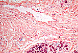 在组织切片上,它们表现为结缔组织内由内皮细胞围成的裂隙状结构。 管腔内常可见嗜酸性的淋巴液和白细胞。 |