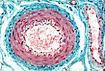 高倍镜下可见动脉组织切片的主要特征: