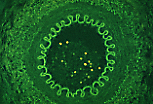 内弹性膜的弹性纤维在荧光显微镜下具有自发荧光特性。