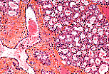 低倍镜下可见乳腺的活跃状态:上皮成分相对于结缔组织成分占明显优势。
