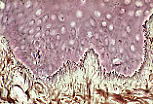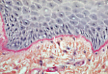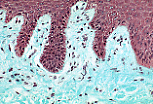 Wilder染色可显示真皮-表皮连接带的网状纤维, 这些纤维垂直于皮肤表面排列。 |