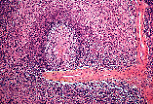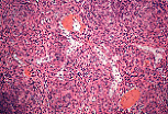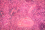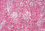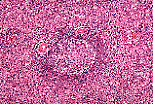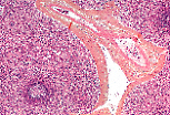 鞘段的特征是管腔狭窄,内衬1-2个内皮细胞核,周围环绕着一团由组织细胞来源的淡染细胞。 |