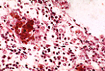 正在被破坏的红细胞(含铁血黄素的赭色色素)印证了脾脏的红细胞破坏(溶血性)功能。 |